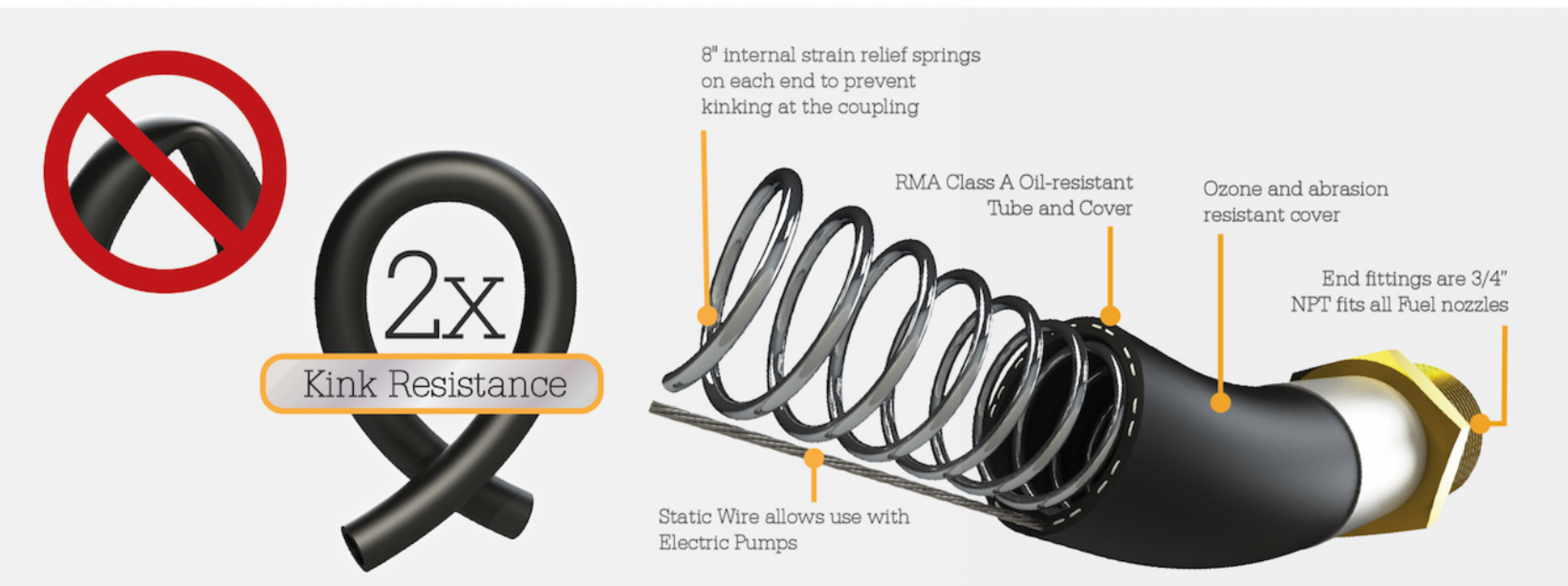 • Integrated static wire prevents dangerous static electricity buildup during fuel transfer