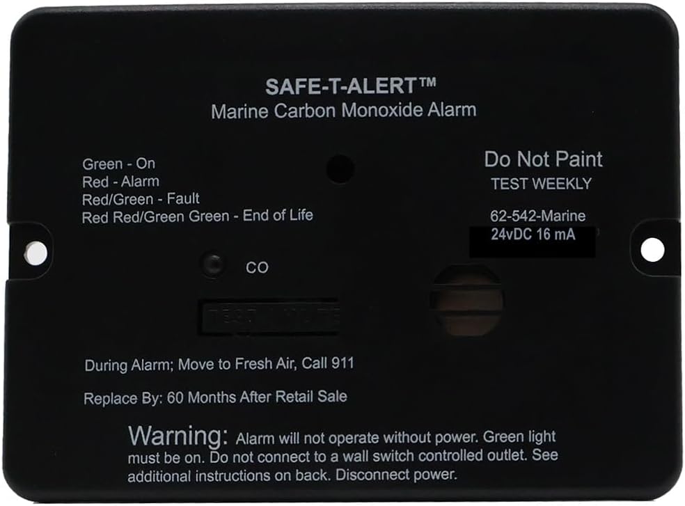The Safe-T-Alert 62 Series Marine Carbon Monoxide Alarm provides reliable CO detection for boats and marine vessels operating on 24-volt electrical systems. This flush mount alarm features a space-saving design specifically engineered to withstand the harsh marine environment.