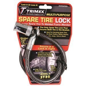 The Trimax ST30 Spare Tire Cable Lock provides reliable security for your spare tire with a 36-inch braided steel cable construction. This heavy-duty lock is designed to deter theft of spare tires mounted on trailers, RVs, trucks, and SUVs.