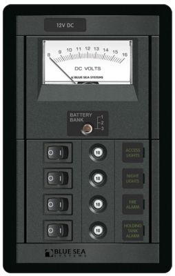 Blue Sea Systems 1459-BSS 4-Position Circuit Breaker Switch Panel with Voltmeter