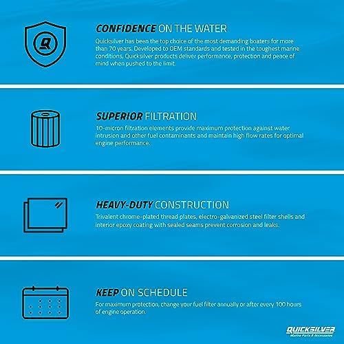 This genuine Quicksilver fuel filter kit provides the quality and reliability you need to protect your Mercury outboard investment. Regular replacement helps maintain optimal engine performance and fuel system integrity.