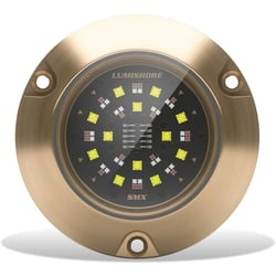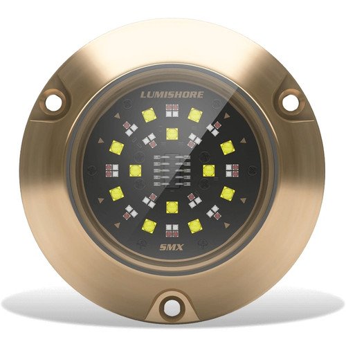 The Lumishore SMX154 EOS 2 Light Set is a complete underwater lighting system designed for larger boats and yachts. This comprehensive kit includes two SMX154 full-function EOS color-changing lights, one EOS i-Connect Hub, one EOS-LUX Command Center, and one 5M DMX cable, providing everything needed for a professional installation.