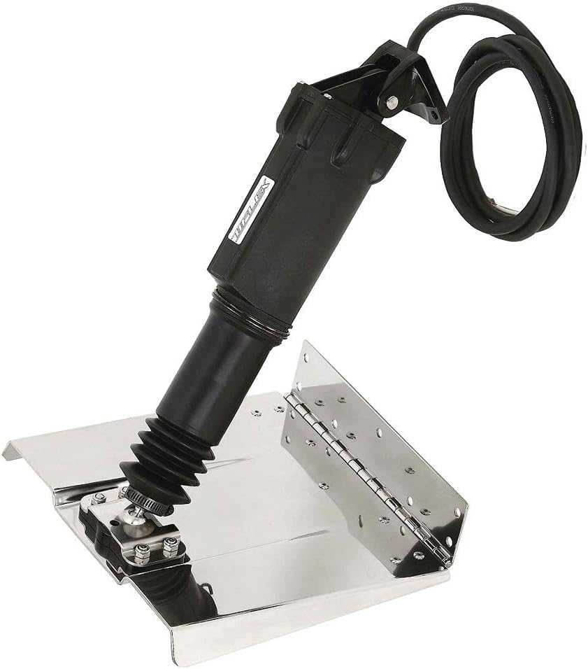 The Uflex MTCP912RJ is a complete compact electromechanical trim tab system designed to improve fuel economy and passenger comfort on boats. This premium kit features mirror-polished stainless steel tabs measuring 9 inches wide by 12 inches long, paired with two high-performance AC12 compact actuators and a chrome joystick control unit.