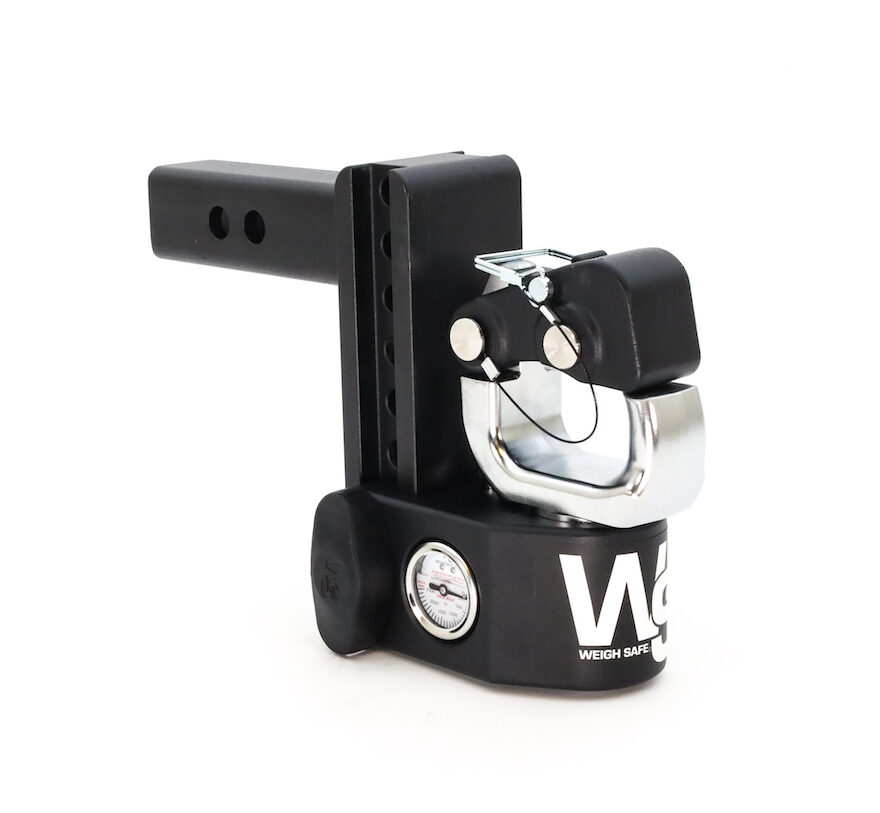 The Weigh Safe SWS6-2.5-PATB-KA is a heavy-duty steel adjustable ball mount designed for Class 5 towing applications, featuring a patented built-in tongue weight scale for safer towing. This complete kit includes a 6-inch drop hitch with 2.5-inch shank, pintle attachment, and stainless steel tow balls for maximum versatility.
