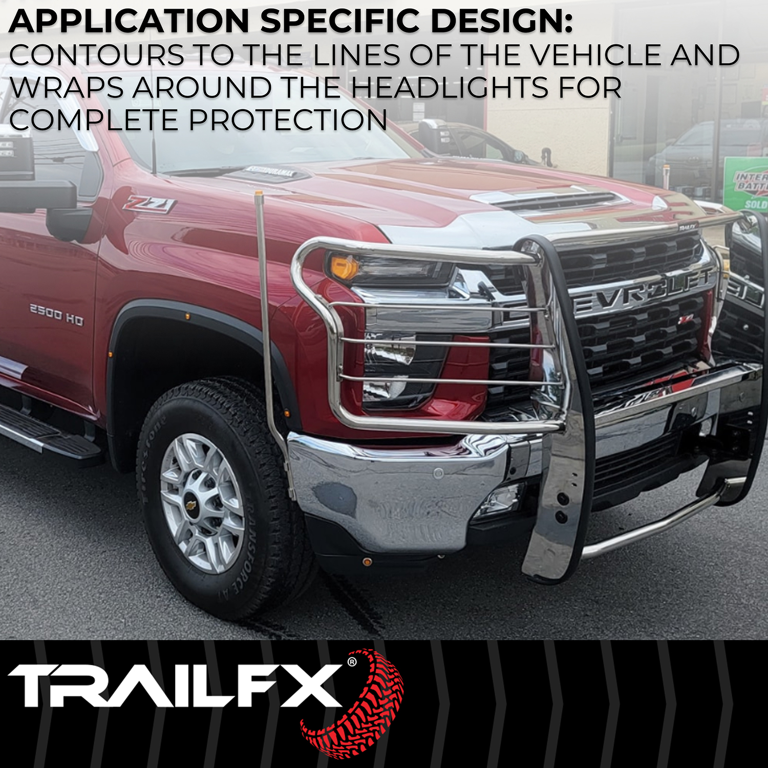 • Integrated brush guard extends protection to headlights and grille areas