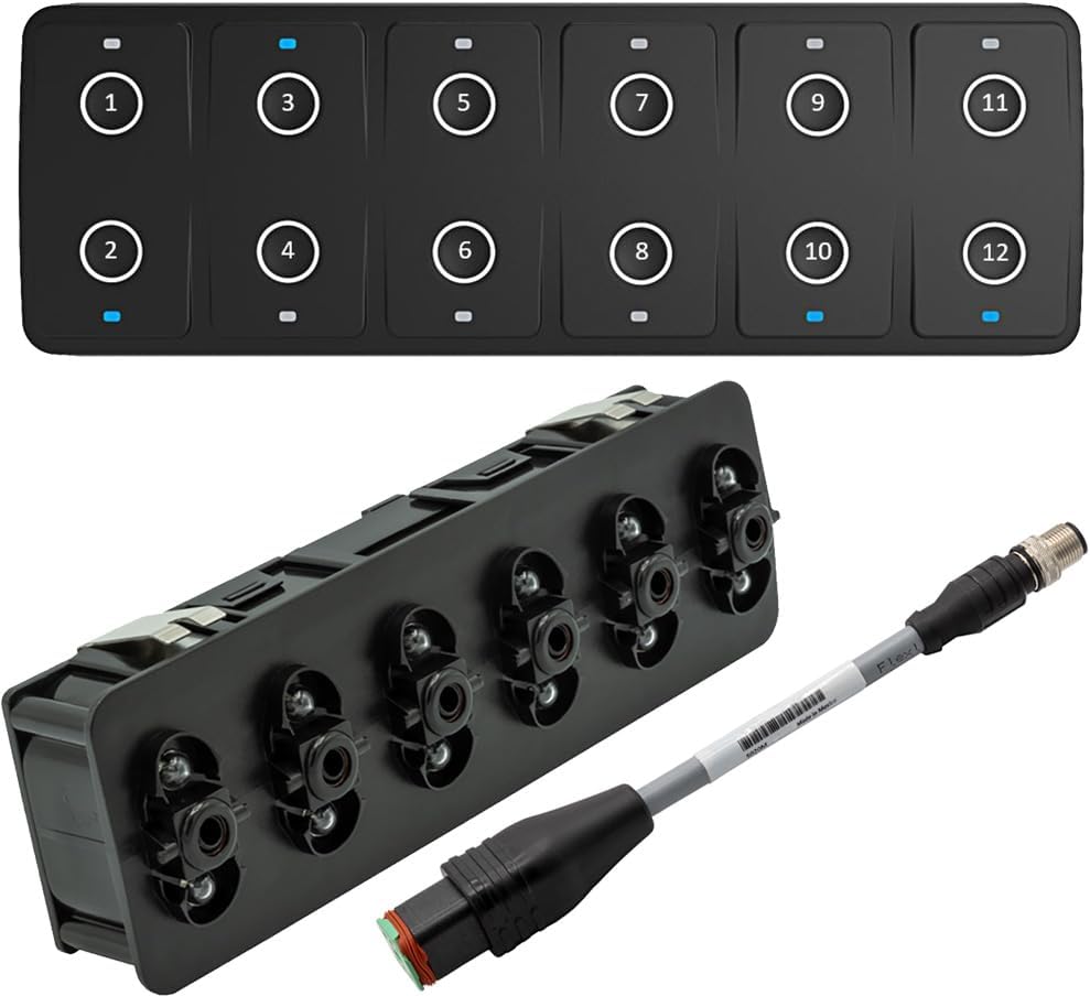 The CKM12 keypad eliminates the need for multiple individual switches by consolidating vessel control into a single, intelligent interface. The horizontal cable orientation makes it ideal for installations where space constraints or panel layout require a low-profile connection. Perfect for powerboats, sailboats, and commercial vessels seeking centralized control with professional appearance and reliability.
