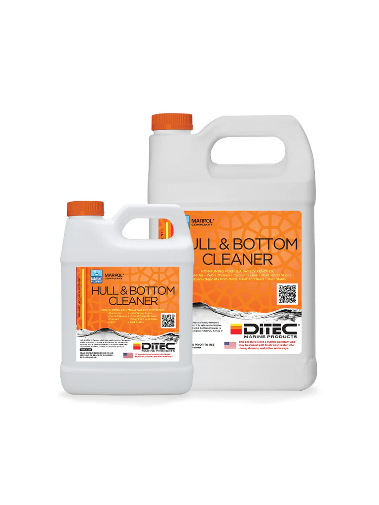 DiTEC's Hull & Bottom Cleaner is a safe, highly effective, and eco-friendly alternative to traditional acid cleaners for removing marine growth, mineral deposits, and rust from boat hulls. This biodegradable, non-fuming formula is designed for use on a wide range of surfaces and can also be used in closed coil cooling systems.