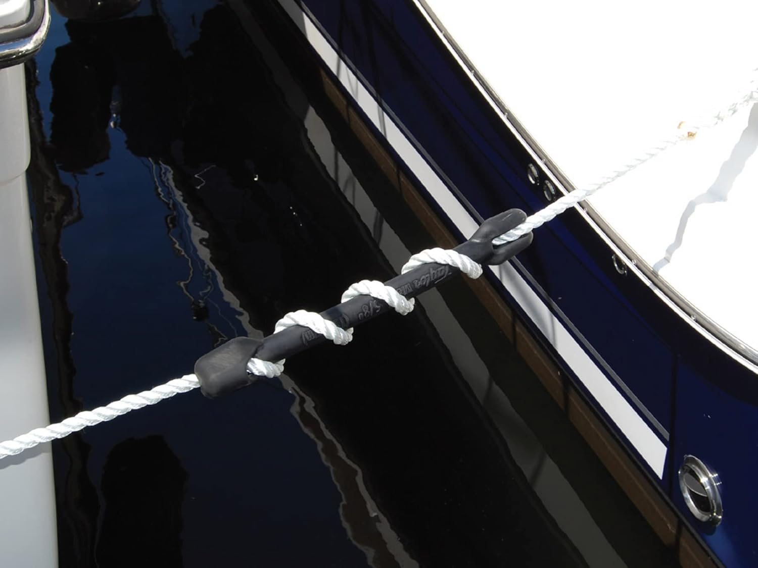 • Reduces strain on dock lines, cleats, and mooring hardware