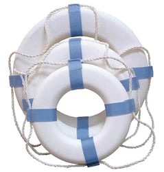 The Taylor Made 373 Decorative Life Ring brings classic nautical charm to your boat, pool, patio, or marina. This 25-inch diameter ring features white with blue stripes styling that complements any waterfront setting.