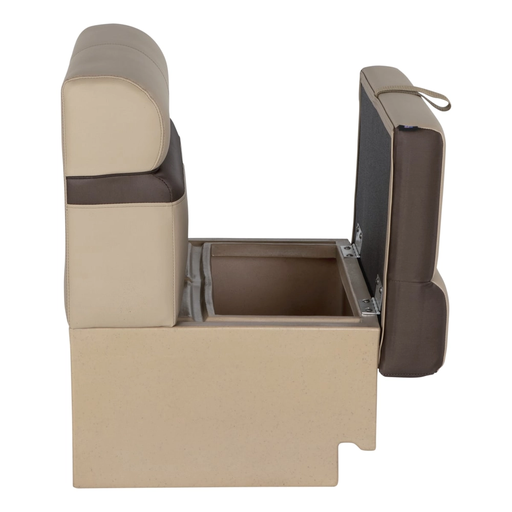 Part of the Platinum Series line, this 30-inch bench seat combines world-class design with innovative engineering. The hinged cushion opens to reveal a spacious storage area perfect for stowing equipment or converting to a live well. Dimensions are 30 inches long x 26 inches wide x 30 inches high, making it ideal for a variety of pontoon boat configurations.