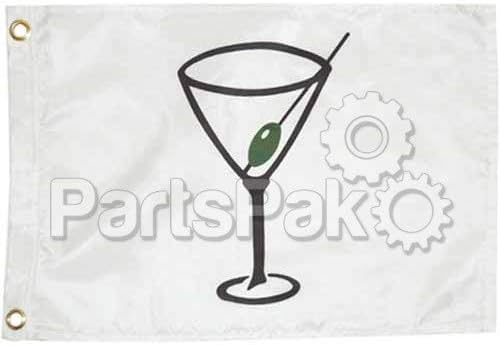 The Taylor Made 9118 is a traditional nautical cocktail flag measuring 12 inches by 18 inches. This decorative maritime flag is designed to be flown on boats to signal that cocktail hour has begun, following classic yachting tradition.