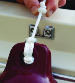 • Tie fender rope to durable nylon peg, then peg simply slips into plate