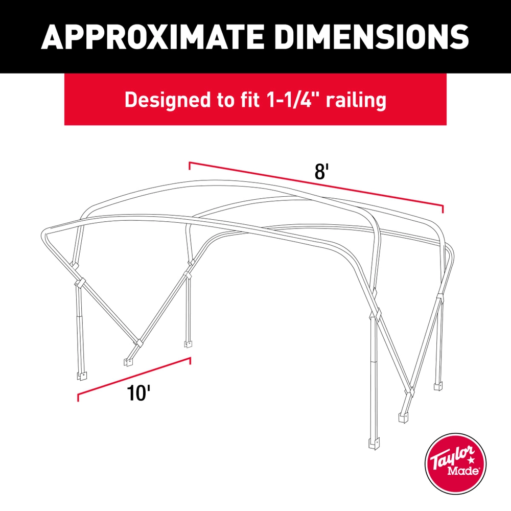 Taylor Made 2020329852 Pontoon Bimini Top Kit 8'W x 10'L Black