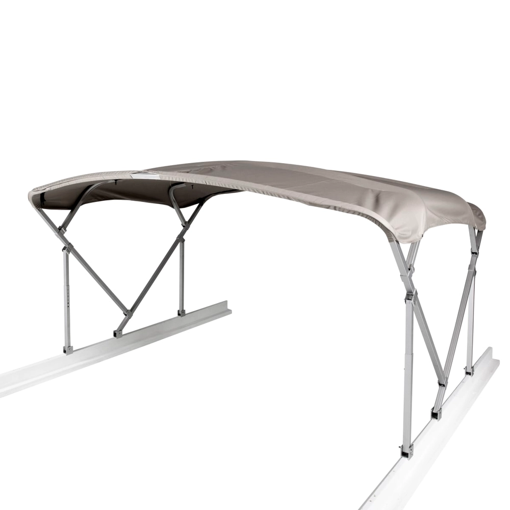The Taylor Made Manual Bimini Top Kit provides complete shade protection for 8-foot wide pontoon boats. This comprehensive kit includes everything needed to refresh or install a new pontoon bimini: the four-bow aluminum frame, marine-grade fabric canvas, matching storage boot, and all installation hardware.
