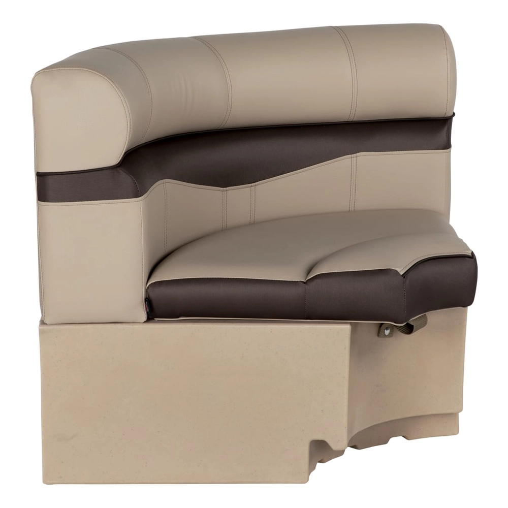 The Taylor Made Rockport Series Radius Corner Pontoon Seat in River Rock gray delivers premium comfort and durability for your pontoon boat. This replacement corner seat features a timeless design that complements any deck layout while maximizing your available floor space.