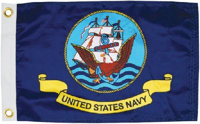 The Taylor Made 5621 is a high-quality United States Navy military flag measuring 12 inches by 18 inches, perfect for displaying your support for the U.S. Navy on boats, RVs, or at home. This compact flag is designed for marine and outdoor use, featuring durable construction that can withstand the elements.