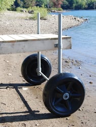 This wheel is ideal for boat owners who need a reliable solution for moving docks and boat lifts across various surfaces including sand, gravel, and concrete. The large diameter and wide tread distribute weight effectively, making transportation smooth and effortless. Manufacturer part number 1224.