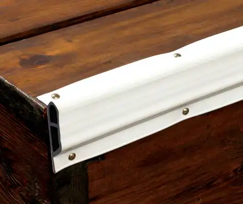 This small profile edge guard protects your dock structure from boat impacts while providing a cushioned surface that won't damage boat hulls. The white vinyl finish resists weathering and maintains its appearance in harsh marine conditions.