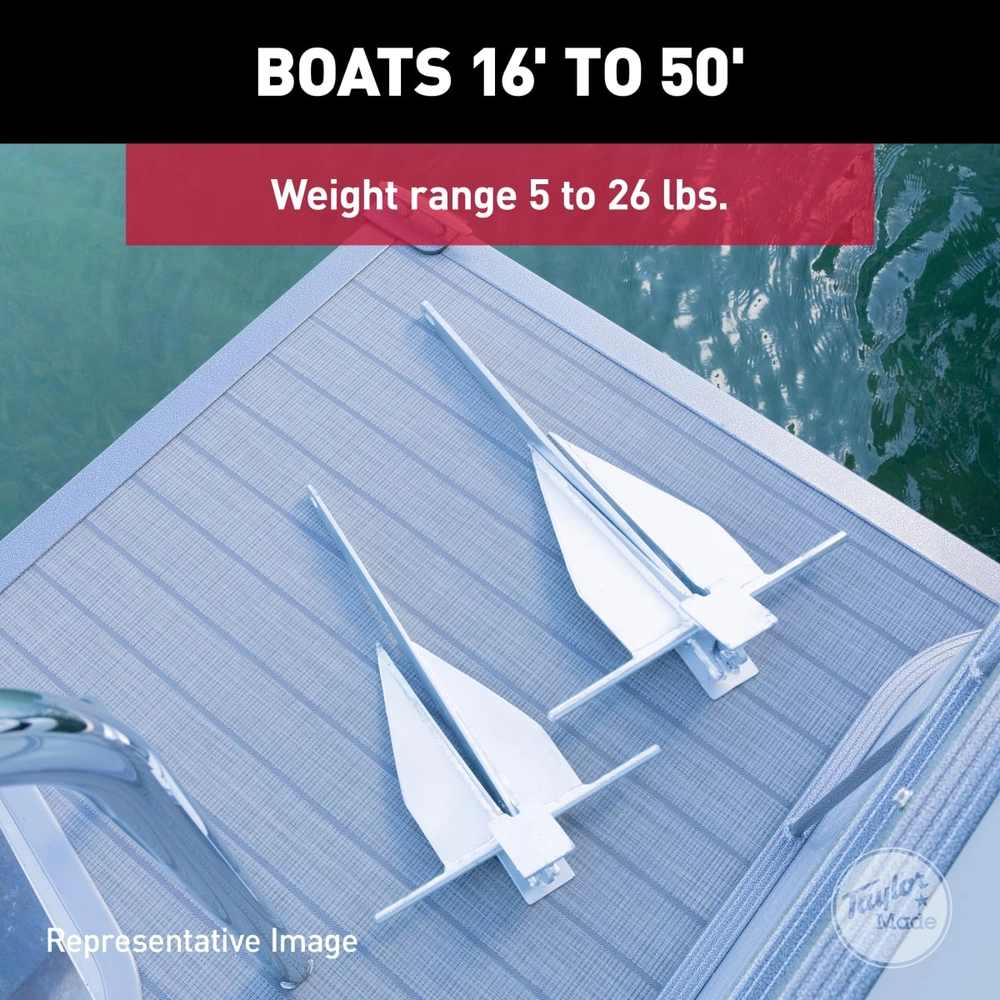 The Taylor Made Legacy Series Anchor is a high-performance fluke-style anchor designed for small to medium boats ranging from 16' to 28'. Engineered with superior holding power, this anchor delivers exceptional performance in mud and sand bottom conditions while remaining lightweight and easy to handle.