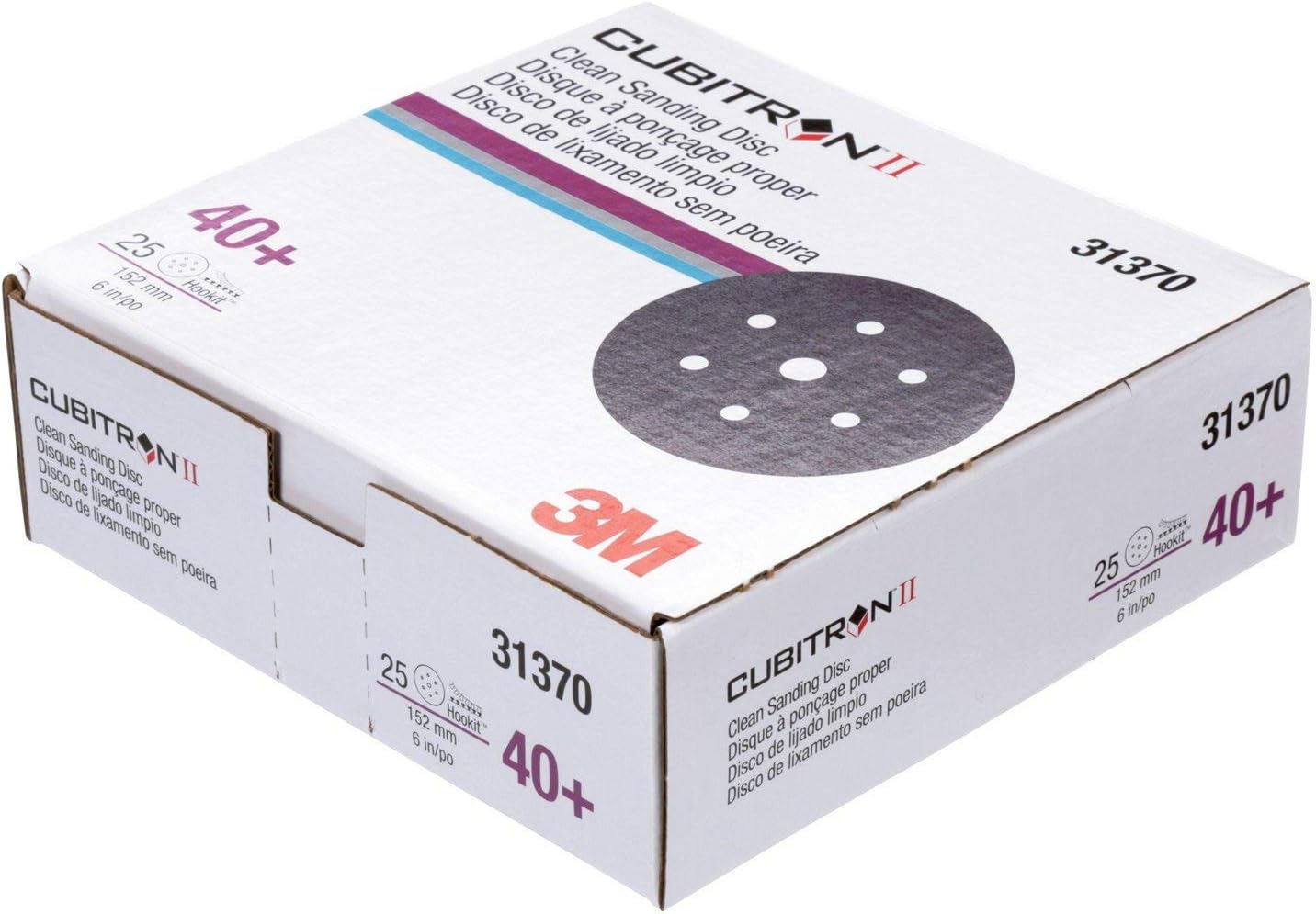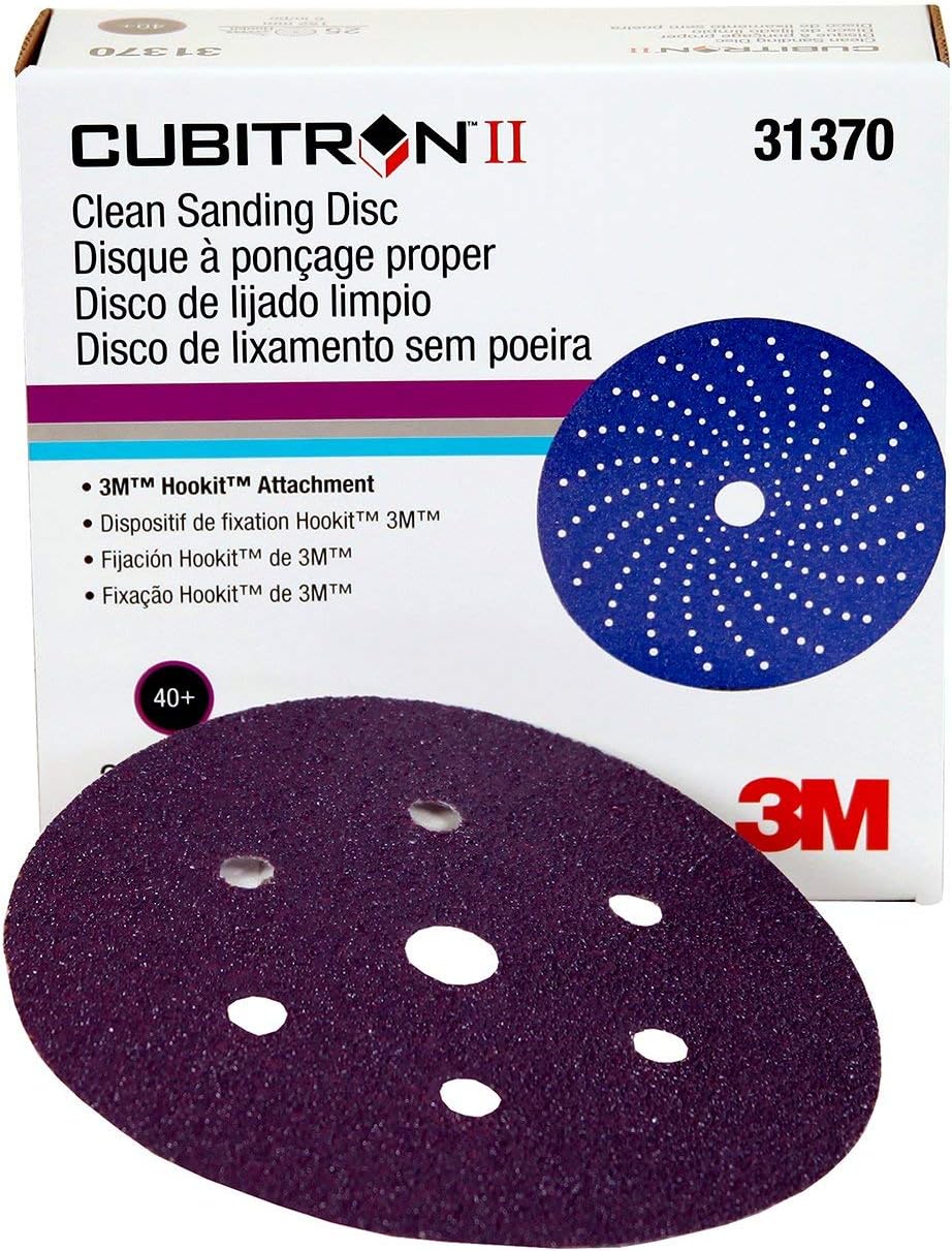 The 3M Cubitron II Hookit Clean Sanding Abrasive Disc 737U combines advanced 3M technology for professional automotive repair. Its long-lasting triangular shaped grain and multi-hole pattern for superior dust extraction make the disc ideal for paint removal, rough body filler shaping, fine feather-edging or final prep before blending or priming.