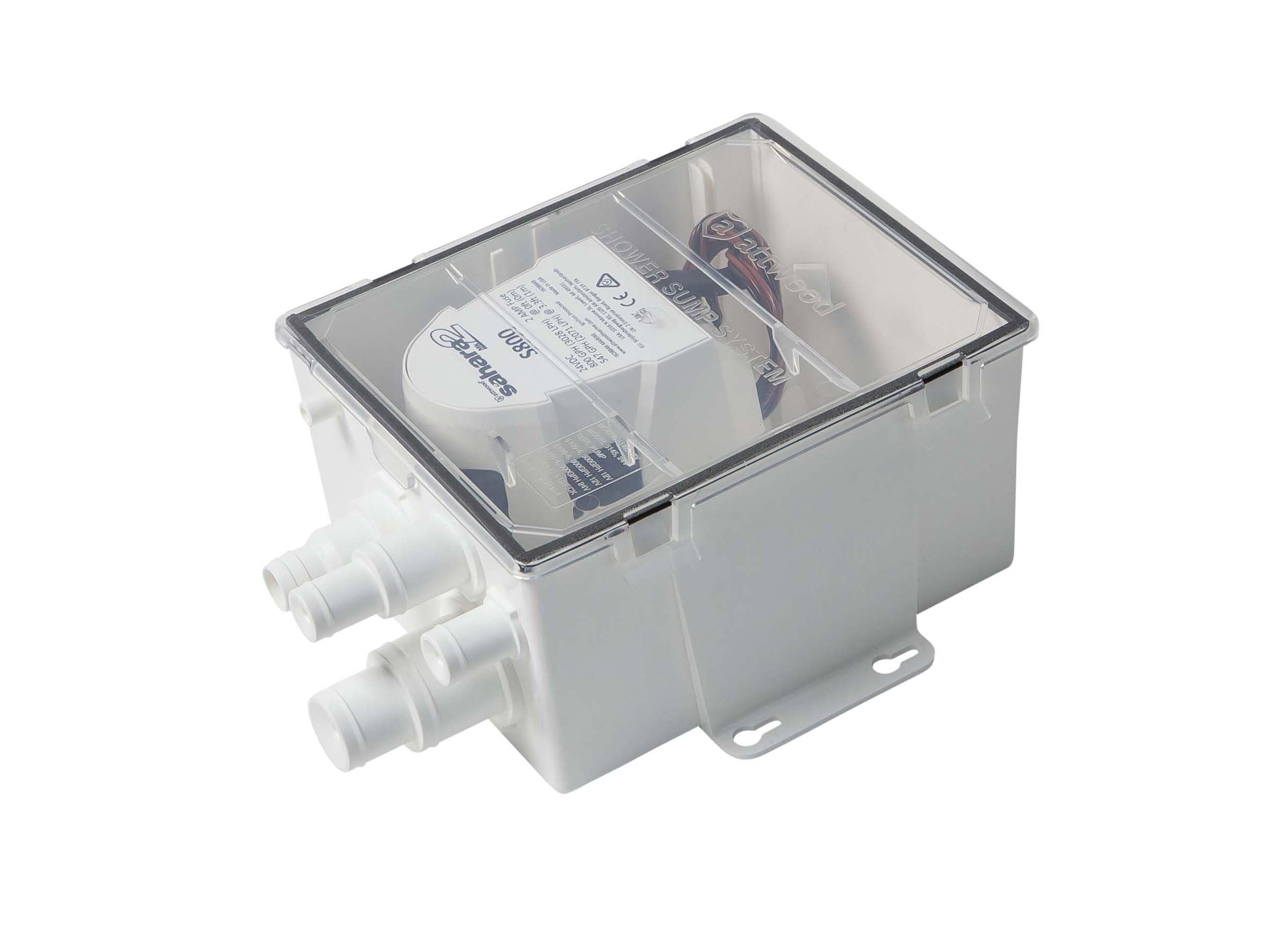 The Attwood Marine 5144-4 Shower Sump Mk2 is a complete shower drain pump system designed for marine applications requiring 24-volt power. This large-capacity unit features an 800 GPH (gallons per hour) pump that efficiently removes shower and wash-down water from below-deck compartments, preventing water accumulation in your boat's bilge.