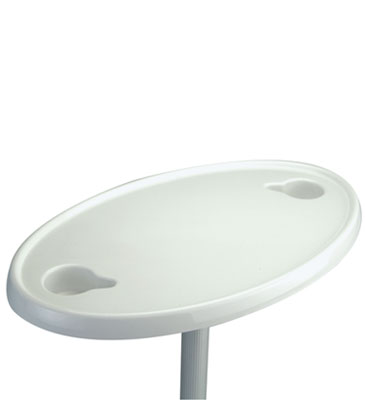 • Acrylic-coated ABS plastic oval tabletop with durable, weather-resistant finish
