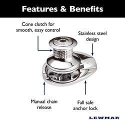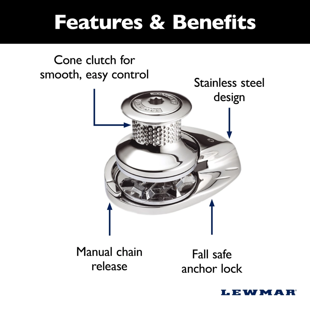 The Lewmar V1 Vertical Windlass Gypsy Only is a compact, low-profile electric windlass designed for power and sailboats ranging from 28 to 40 feet in length. This vertical windlass features a robust stainless steel construction that conceals a reliable worm drive gearbox and splined shaft, delivering maximum strength and control for anchoring operations.