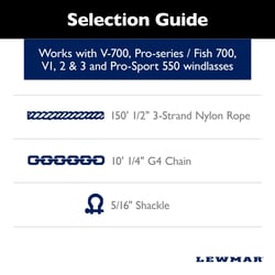 Lewmar 2020202592 Pre-Spliced Anchor Rode 150' x 1/2" Nylon Rope with 10' x 1/4" G4 Chain