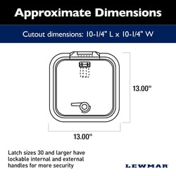 • Cutout dimensions: 10-1/4" L x 10-1/4" W