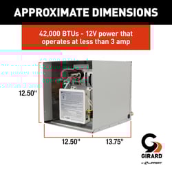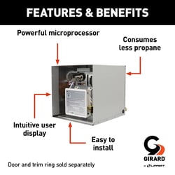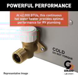 The Girard GSWH-2 Tankless Water Heater (model 2GWHAM) by Lippert Components delivers endless hot water on demand for RV applications. This propane-powered tankless water heater features a powerful 42,000 BTU burner and runs on 12V power, providing optimal performance without weighing down your rig.