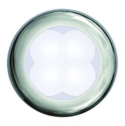 White LED; Clear Lens; 0.5 Watt Power Consumption; 24 Volt; UV/ Shock/ Impact/ Vibration Resistant; IP67 Waterproof; Flush/ Surface Mount; Polished Stainless Steel Bezel; Single; With Surface Mounting Ring/ 3 Stainless Steel Screws/ 8 Inch Cable