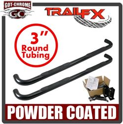 TrailFX 1130308093 3 Inch Round Nerf Bars Powder Coated Black Steel Rocker Panel Mount