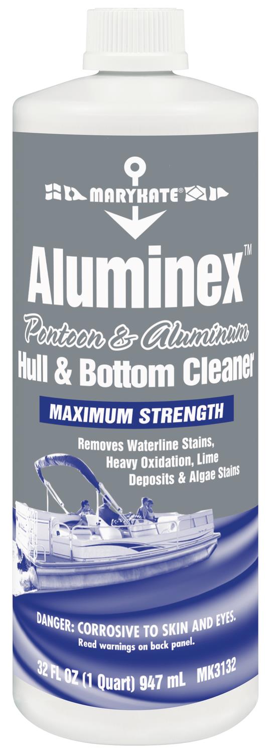 CRC Aluminex is a powerful acid-based aluminum hull cleaner specifically formulated to restore weathered and oxidized aluminum boat hulls, pontoons, and marine surfaces to their original shine. This professional-grade cleaner effectively removes stubborn stains, waterline discoloration, rust deposits, and marine growth without harsh scrubbing.