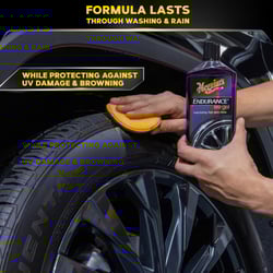 Meguiar's Endurance Tire Gel delivers a brilliant high-gloss shine that lasts for weeks, even through washing and rain. This advanced formula goes beyond ordinary tire shine products with specialized macropolymers and copolymers that provide long-lasting protection and a deep, rich black appearance.