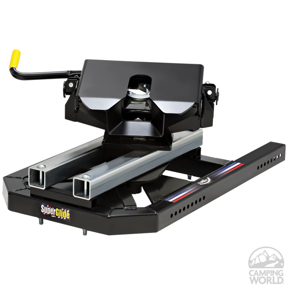 The PullRite 2700 SuperGlide is a premium sliding fifth wheel hitch designed to prevent cab contact during tight turns, making it ideal for short bed trucks. This automatic sliding hitch system features a 16,000-pound weight carrying capacity and PullRite's signature dual pivot design that articulates both front-to-rear and side-to-side for smooth towing performance.