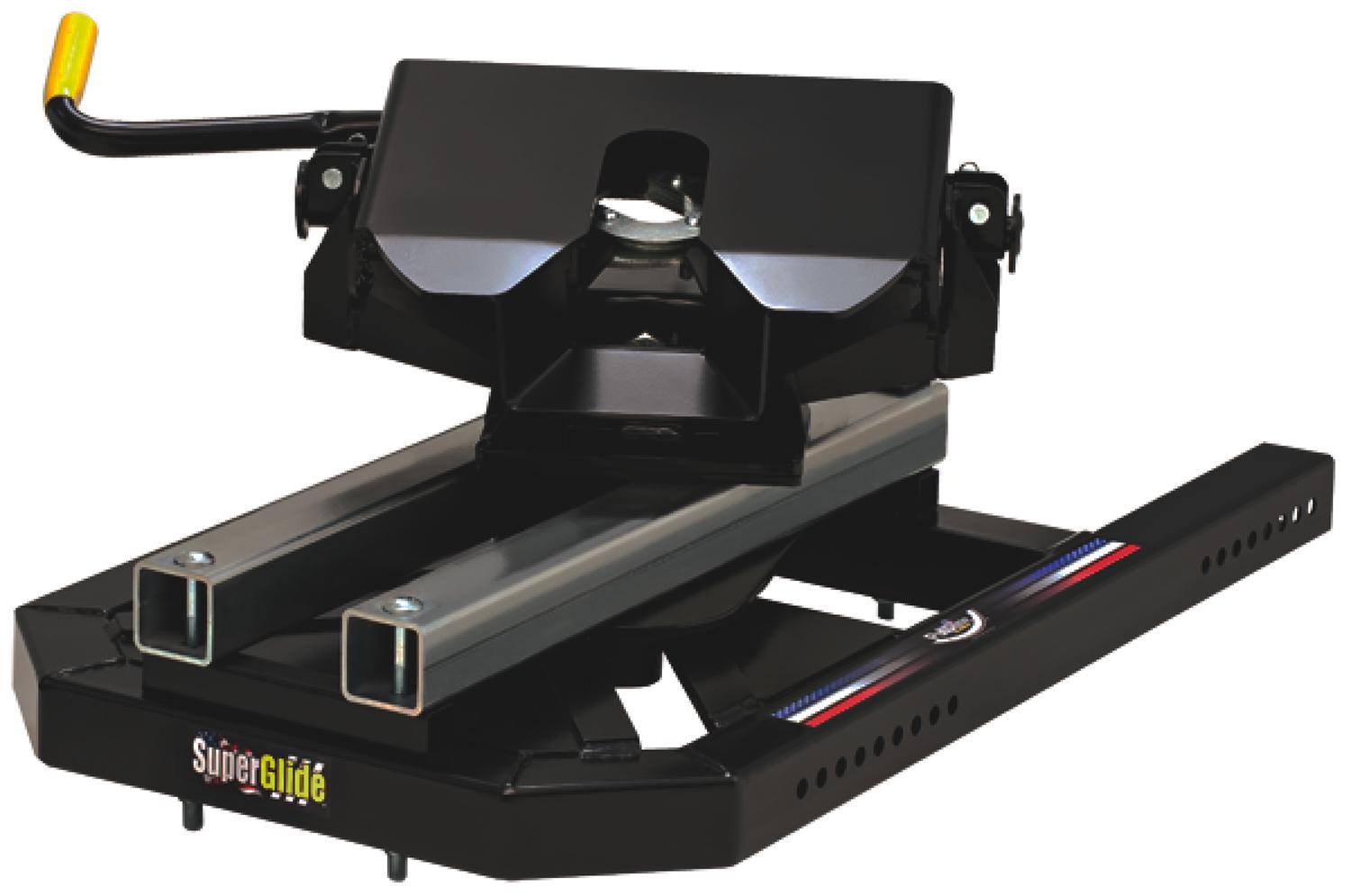 SuperGlide is the only real solution to safely and efficiently regain 90° turning capability in short bed trucks. The cam-action mechanism operates automatically without friction, eliminating the need for grease or lube plates. Important: A capture plate is a required component of the SuperGlide fifth wheel towing system and is sold separately. This hitch is designed for use with Industry Standard Rail (ISR) mounting systems and can be converted for use with OE puck systems. Made in the USA and SAE J2638 tested.