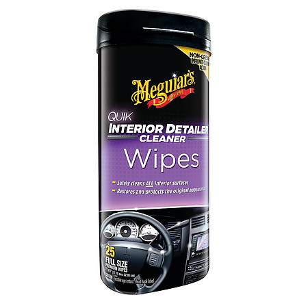 Meguiar's Quik Interior Detailer Wipes provide a fast, convenient solution for cleaning and maintaining all interior surfaces in your vehicle. These premium wipes combine an advanced cleaning formula with large, thick, non-linting material to deliver professional results without the greasy residue common with other products.