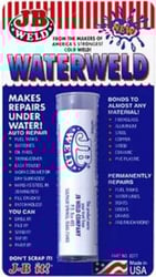 JB Weld WaterWeld is a two-part hand-kneadable epoxy putty stick specially formulated for underwater and wet surface repairs. This versatile repair compound is ideal for fixing leaks in plumbing, fuel tanks, pools, tubs, showers, drains, boats, and portable water tanks without the need for clean, dry surfaces.