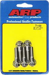 The ARP 771-1003 is a 5-piece metric bolt kit featuring premium M12 12-point fasteners. These high-performance bolts are manufactured from specially alloyed ARP 300 stainless steel with a nominal tensile strength rating of 180,000 psi, providing a substantial safety margin over standard Grade 8 hardware.
