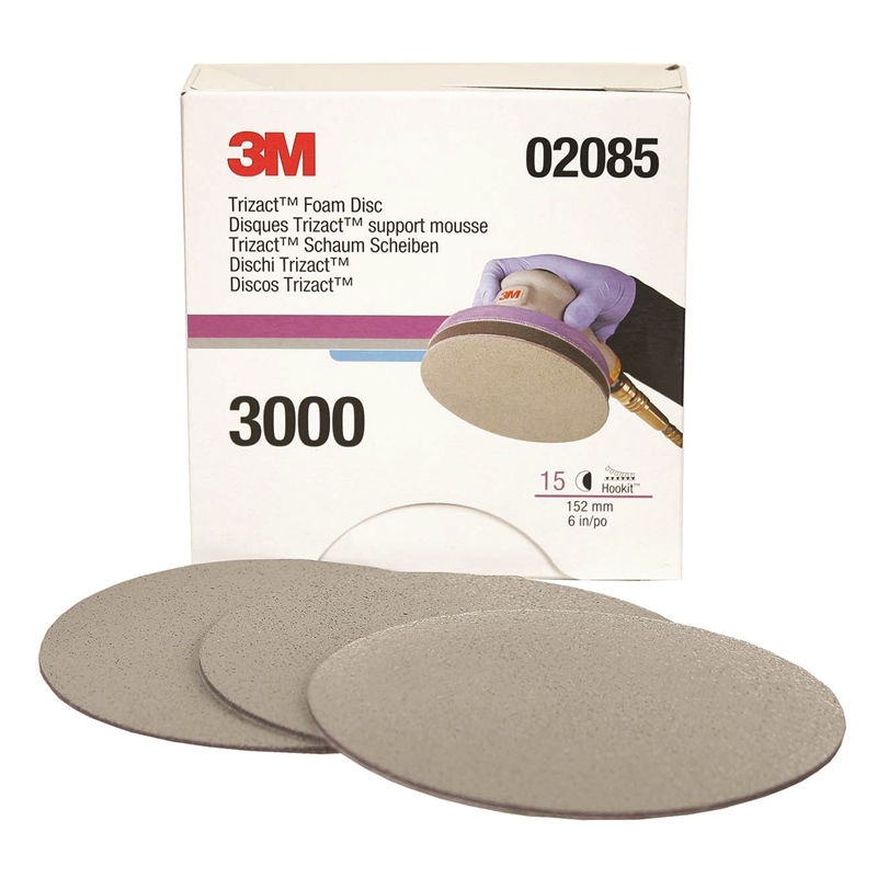 The 3M 02085 Trizact™ Hookit™ Foam Disc is a professional-grade finishing disc designed for paint refinement and scratch removal. Featuring 3M's proprietary Trizact abrasive technology with P3000 grit, this disc delivers consistent, uniform results when refining P1200-P1500 grade sand scratches during the paint finishing process.