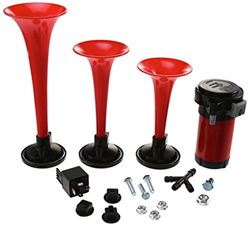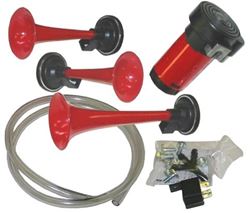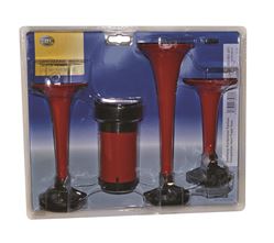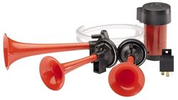 Triple-Tone Frequency; 880/ 820/ 780 Hertz; Trumpet Style; Painted; Red; Plastic; With Compressor/ Relay/ Tubing/ Mounting Brackets