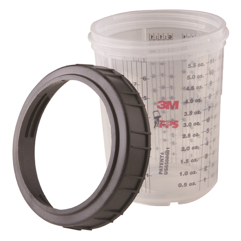 The 3M 16001 Paint Prep System provides a complete solution for mixing and spraying paint with maximum efficiency and minimal cleanup. This standard size kit includes calibrated mixing cups, flexible collapsible liners, lids with built-in 200 micron filters, and secure locking rings.