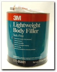 The 3M 05801 Lightweight Body Filler is a professional-grade polyester resin compound designed for repairing dents, dings, and cosmetic imperfections on vehicles. This versatile filler offers excellent adhesion to challenging surfaces including bare steel, aluminum, and fiberglass reinforced polyester (FRP), making it ideal for automotive body repair work.