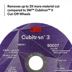 3M 90040 Cubitron 3 Cut-Off Wheel, , 36+, T27, 4-1/2 in x 0.045 in x 5/8 in-11 (115 x 1.6 mm x 5/8-11 in), Precision Shaped Grain, Autobody and Marine Sheet Metal, Stainless Steel Tubing