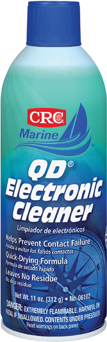 CRC Marine QD® Electronic Cleaner is specifically formulated to safely clean sensitive electronic components, contacts, and circuitry in marine and general electronics applications. This fast-acting cleaner removes dirt, dust, oil, and other contaminants that can cause contact failure or system malfunction.