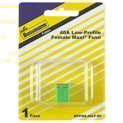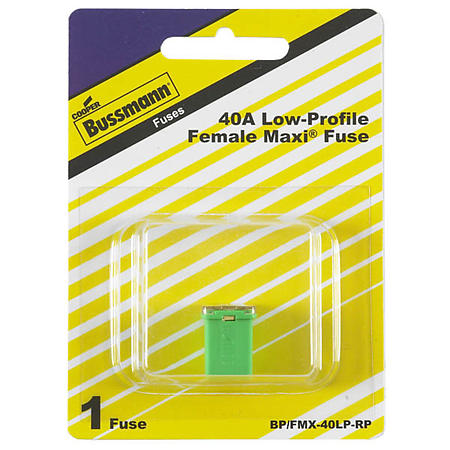 The Bussmann FMX40 is a 40-amp female Maxi fuse designed for automotive and heavy-duty electrical circuit protection. This fuse features a female terminal configuration that accepts a male blade connector, making it ideal for applications requiring a more secure, serviceable connection than standard blade fuses.