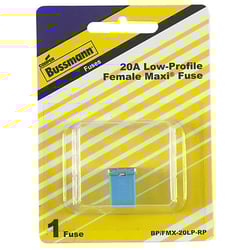 The Bussmann FMX20LP is a low-profile female maxi fuse designed for automotive and heavy-duty electrical circuit protection. This 20 amp time-delay fuse features female blade terminals that plug directly into fuse blocks, eliminating the need for separate fuse holders and reducing installation space requirements.