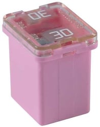 The Bussmann FMX30LP is a 30 amp low profile maxi fuse designed with female terminals for secure automotive electrical circuit protection. This time-delay "slow blow" fuse provides reliable overcurrent protection while allowing temporary harmless current surges to pass, making it ideal for circuits with inductive loads like motors, solenoids, and other devices that draw higher current during startup.
