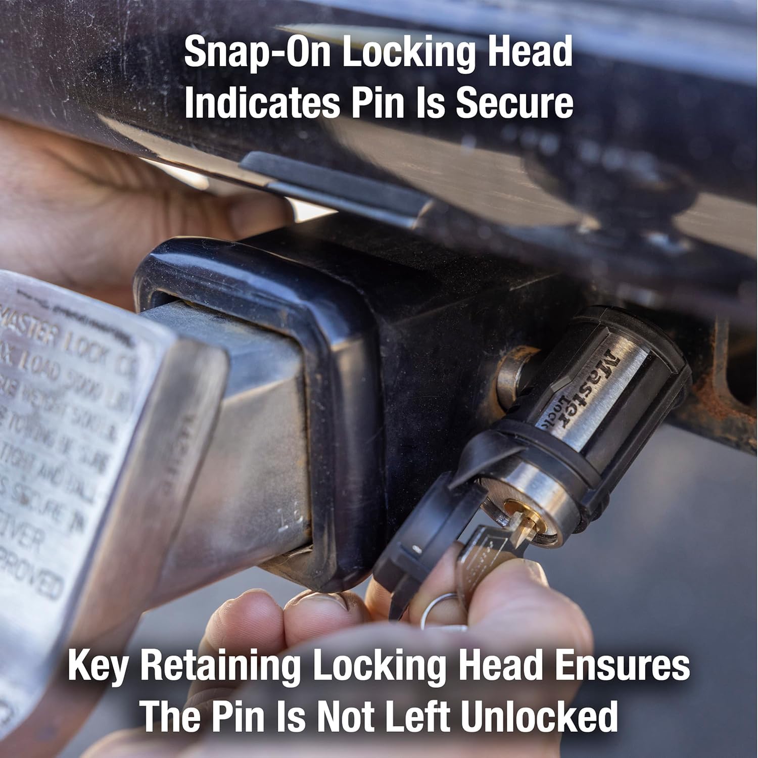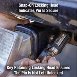 This receiver lock provides peace of mind when your trailer hitch, bike rack, cargo carrier, or other hitch-mounted accessories are installed. The stainless steel finish ensures long-lasting performance in all weather conditions, while the barbell design prevents removal without the key.