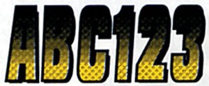 The Hardline Products YEBKG300 Hardline Series 300 Registration Kit offers an innovative carbon fiber appearance with eye-catching yellow to black color gradations. This comprehensive kit includes four complete sets of 3-inch characters (A-Z and 0-9), providing everything needed for multiple watercraft registration displays or replacements.